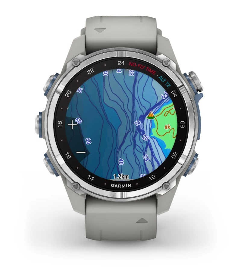 Цветные карты на запястье отображают батиметрические контуры и более 4000 мест для погружения, помогая вам находить новые места и ориентироваться в них.